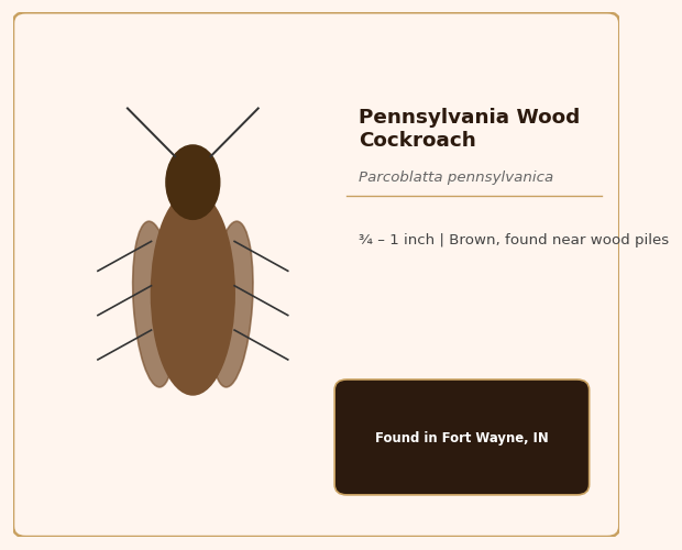 The Pennsylvania Wood Cockroach is a native species to this part of the U.S. and is usually found outdoors rather than inside homes. Males are about one inch long with full wings and are attracted to outdoor lights at night, which is how they occasionally wander inside. Females are smaller and do not have full wings. Because this species doesn’t reproduce indoors, a single roach inside is usually just an accidental visitor. Check firewood piles, wooden siding, and clogged gutters if you see them frequently.