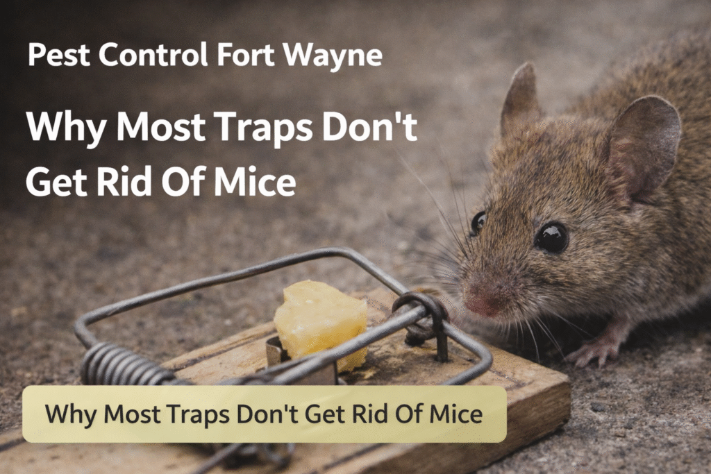 Every year, thousands of Fort Wayne homeowners reach for a box of snap traps the moment they spot mouse droppings in a kitchen drawer or hear scratching behind the walls at night. It makes sense — traps are cheap, easy to find, and feel like immediate action. And yes, they sometimes catch a mouse. But here’s the problem: catching a mouse is not the same as solving a mouse problem. If you have been running traps for weeks and still hearing activity, still finding droppings, or still losing food to gnawing — you are not alone, and your traps are not failing by accident.